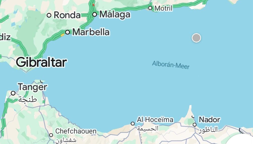 Mal kurz nach Marocco Die zweite Nacht an Bord war ruhiger. Es sind in Barcelona mehr Reisende aus statt eingestiegen. Gestern Abend habe ich mit Veronika, Susana und  Mariann zu Abend gegessen die mit ihren Wohnmobilen unterwegs sind nach Marokko. Wir hatten einen sehr schönen und unterhaltsamen schweizerisch-östereichisch- deutschen Abend. Heute werden wir am Abend in Tanger ankommen. 19 Uhr in Marocco ist dann 20 Uhr unserer Zeit. In Tanger versuche ich dann die nächste Fähre nach Algeciras zu bekommen….