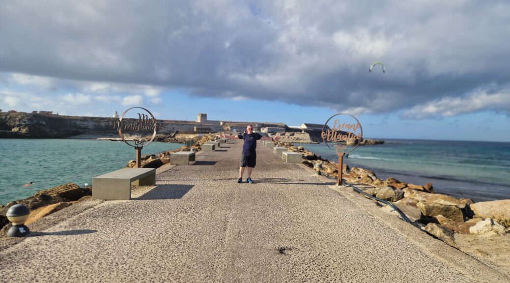 Der Zahnarzt in Tarifa und Petanque mit Carlos Freunden Der Tag fing mit einem Zahnarztbesuch an.  Meine neue Implantatkrone ist locker. Carlos Zahnarzt in Tarife hat den Schaden begutachtet das wird dann tu Hause repariert. Tarifa ist eine maurischen geprägte Stadt zwischen den Meeren. Wir machen einen Stadtrundgang bis zum Meer. Hier wird an einer Brücke zur vorgelagerten Festung die Meeresteilung des Mittelmeeres und Atlantik symbolisiert. Am Nachmittag bin ich zum Essen bei Pina und Carlo geladen. Abends ist Carlos…