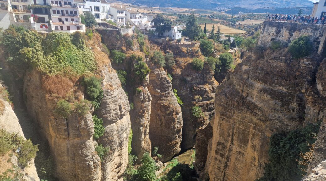 Ausflug in Pinas Heimat Was für ein toller Ausflug heute an meinem letzten Tag in Algeciras. Pina und Carlo haben mich abgeholt, dann fuhren wir mit dem Zug nach Ronda eine tolle Mittelalterlich-Maurisch geprägte Stadt in den Bergen. Besonders der tiefe Taleinschnitt mit extrem hohen Brücken ist hier sehenswürdig. Dann waren wir in einer kleinen Tapas Bar El Lechuguita mit tollem Essen auf kleinstem Raum.