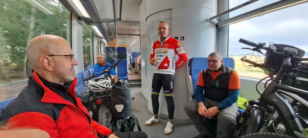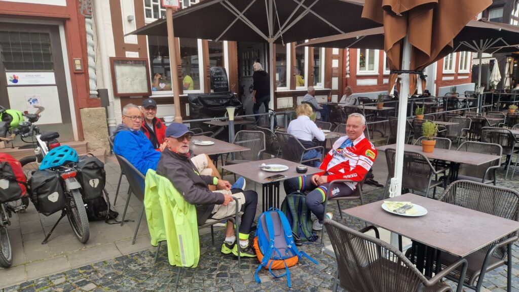 Es war schon früh am Morgen 4:45 Uhr, dann 5:40 etwas später als geplant Fahrt mit Auto und Fahrrad nach Frankfurt Höchst. Parken, Rad beladen und dann gings los 30 Minuten nur für die 10km zum Hauptbahnhof. Aber alles ging gut, die Freunde schon am Bahnsteig und los gings mit dem Zug über Marburg nach Vöhl am Edersee.