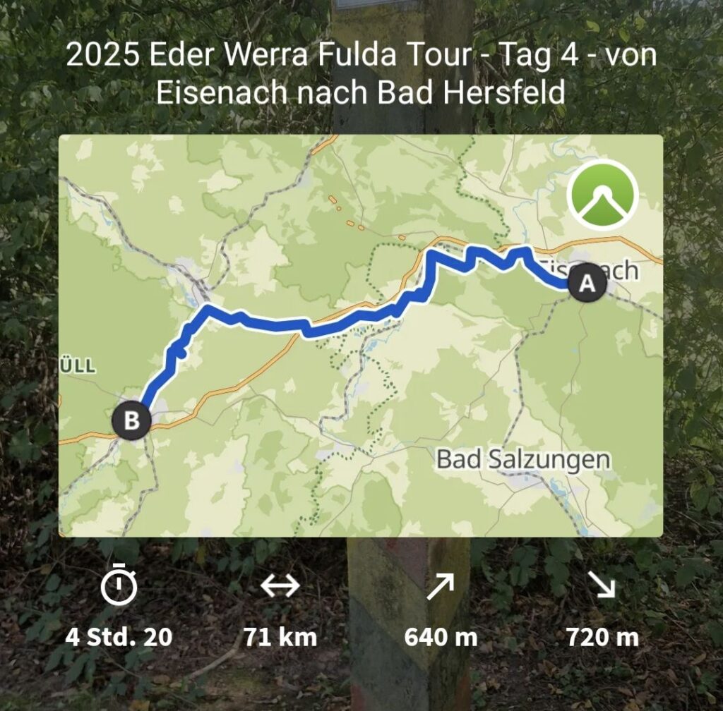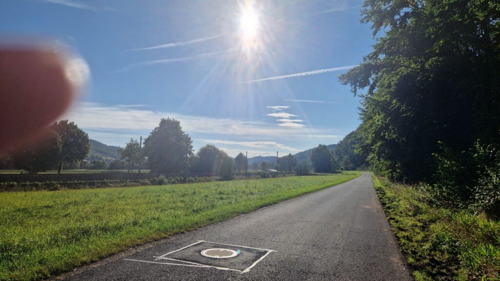 Heute war der erwartete heiße Tag knapp 30 Grad waren es auf den Weg von Eisenach entlang der ehemaligen innerdeutschen Grenze über Herleshausen, Gerstungen, Unter- und Obersuhl. Dann der Weg von der Werra zur Fulda über Bebra nach Bad Hersfeld. Auch wenn es gestern weiter war, machte uns heute die Hitze mehr zu schaffen.