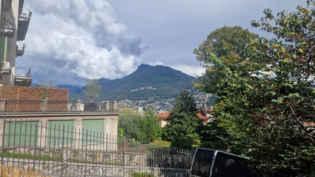 Das habe ich gemacht und komme gegen 15 Uhr in Lugano an. Schön ist es hier. Ich radle am Luganer See entlang und passiere nach 30 km die Grenze nach Italien. Bald wird das Wetter etwas bedrohlich ich fürchte ein kräftiges Gewitter. Nun bin ich zum Ende des Tag 1 in Appiano Gentile ca 50km vor Mailand .