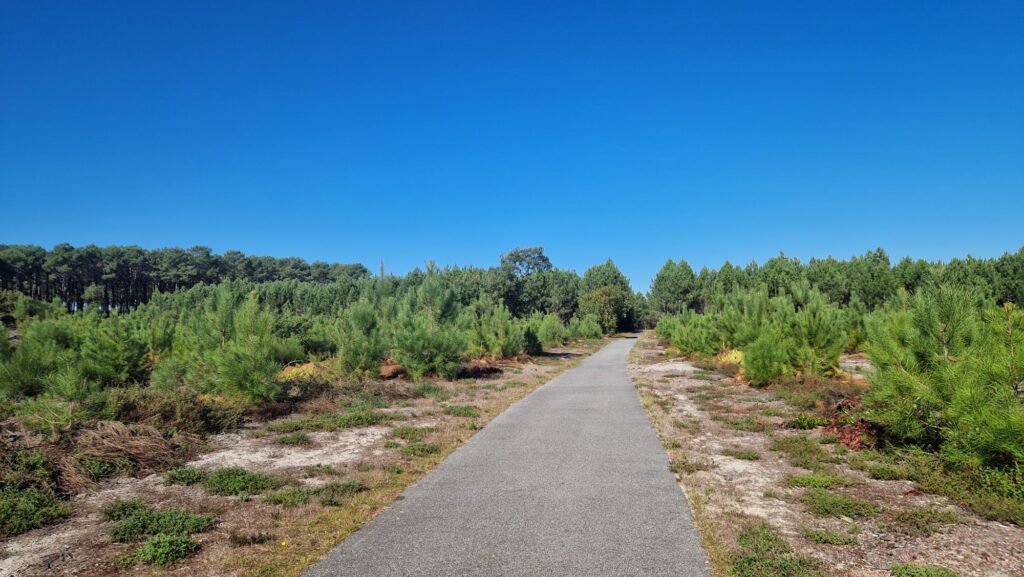 Ein toller Sonntag heute. Nicht zu warm und schönes Wetter und Gelände um 100km Rad zu fahren. Ich bin über sehr gute Radwege durch Pinien und Kiefernwälder gefahren. Hier macht der EV1 Spaß.