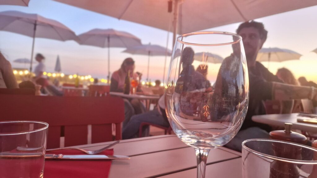 Im Restaurant am Strand habe ich den Sonnenuntergang genossen.