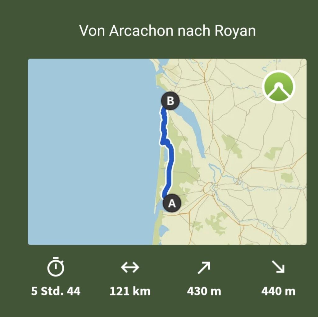 Gestern nach 120 km Radstrecke mit anschließender Fährfahrt über die Garonnemündung nach Royan hatte ich keine Muße mehr das Tagebuch zu führen. Das hole ich nun nach.